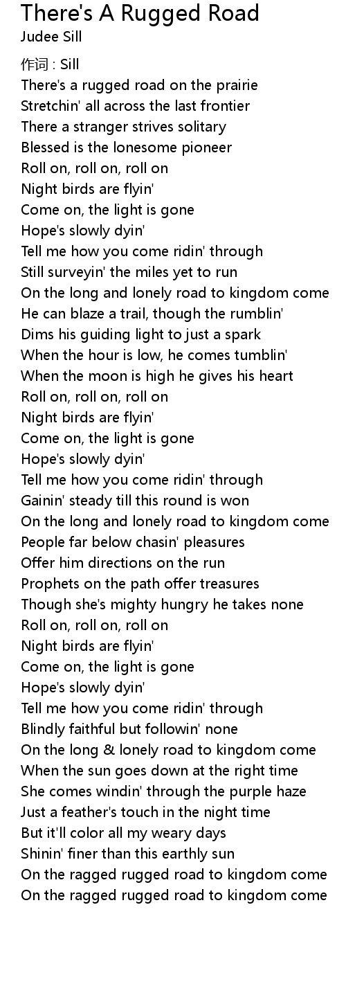 | There' s a rugged road on the prairie | |