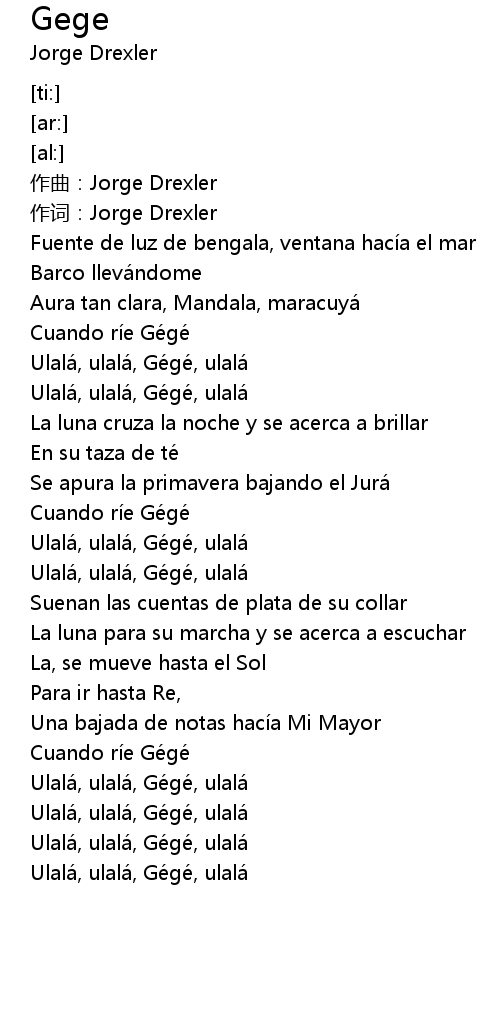 | [01:38.48] | Ulalá, ulalá, Gé gé, ulalá |