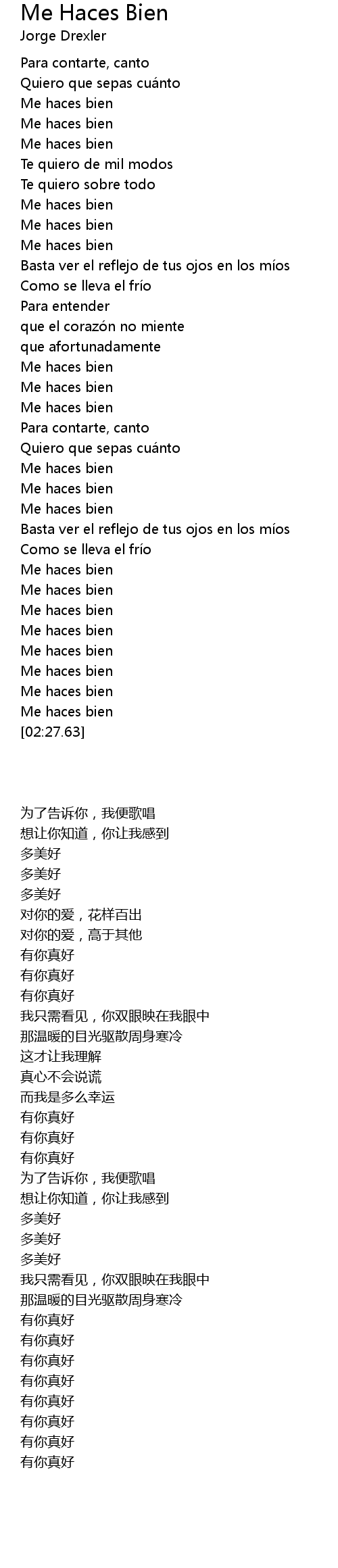 | [00:27.15] | Me haces bien |