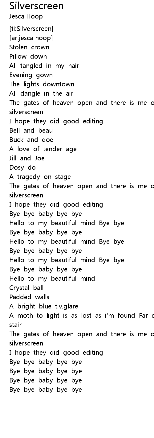 Hello to my beautiful mind Bye bye |