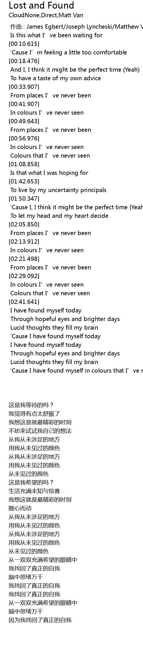 | [04:04.631] | ' Cause I have found myself in colours that I' ve never seen |