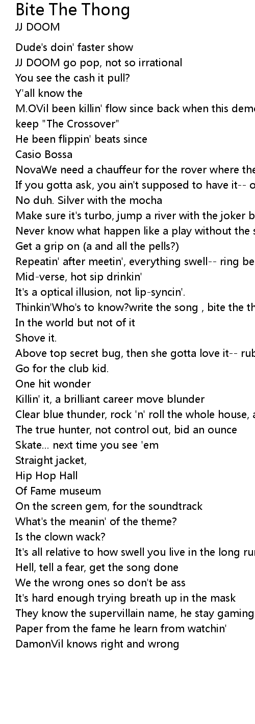 Thinkin'Who's to know?write the song , bite the thong |