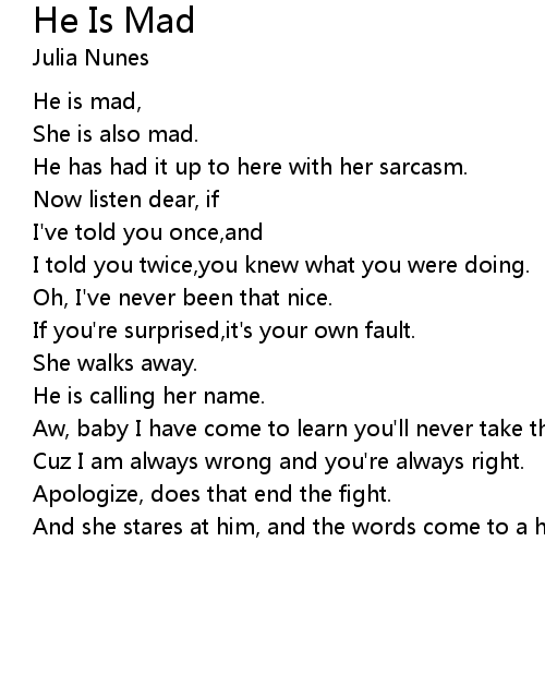 | Song | He Is Mad |
