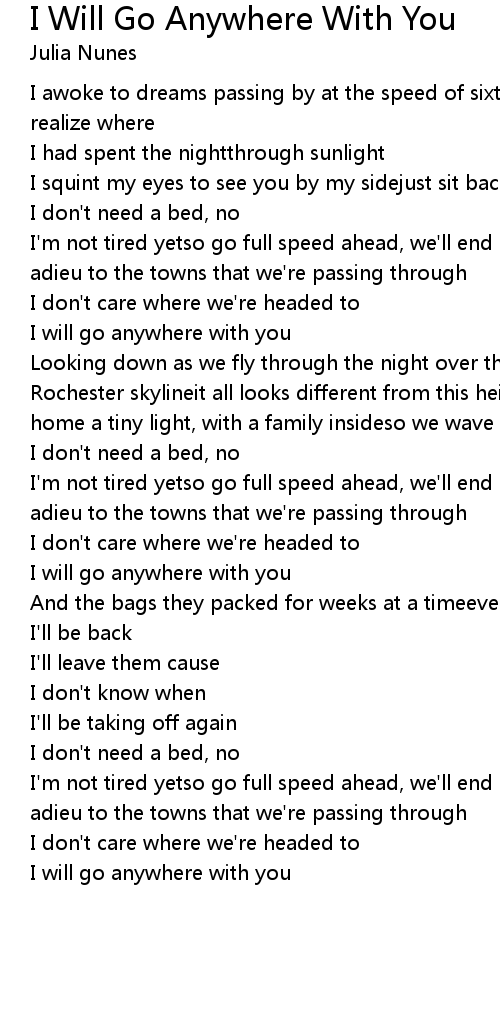 I will go anywhere with you |