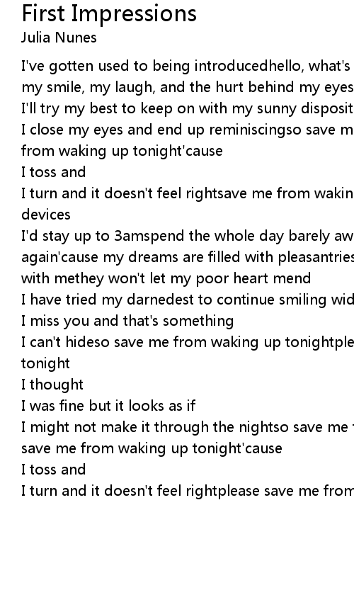 First Impressions Lyrics