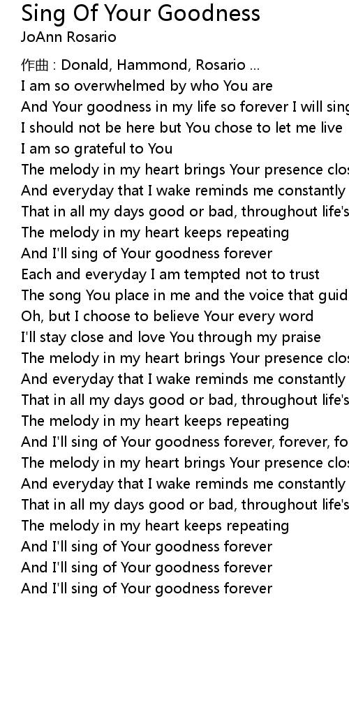 | And I' ll sing of Your goodness forever, forever, forever, yeah | |