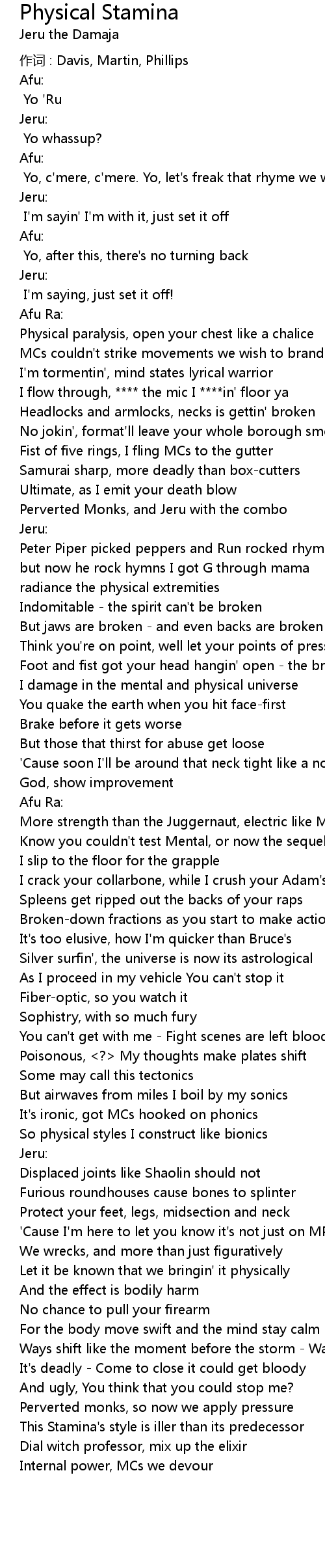 | Song | Physical Stamina |