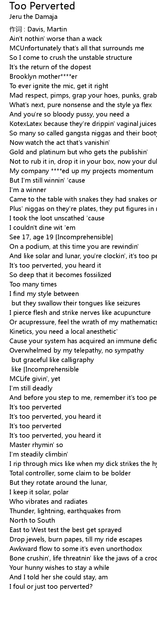 | And like solar and lunar, you' re clockin', it' s too perverted | |