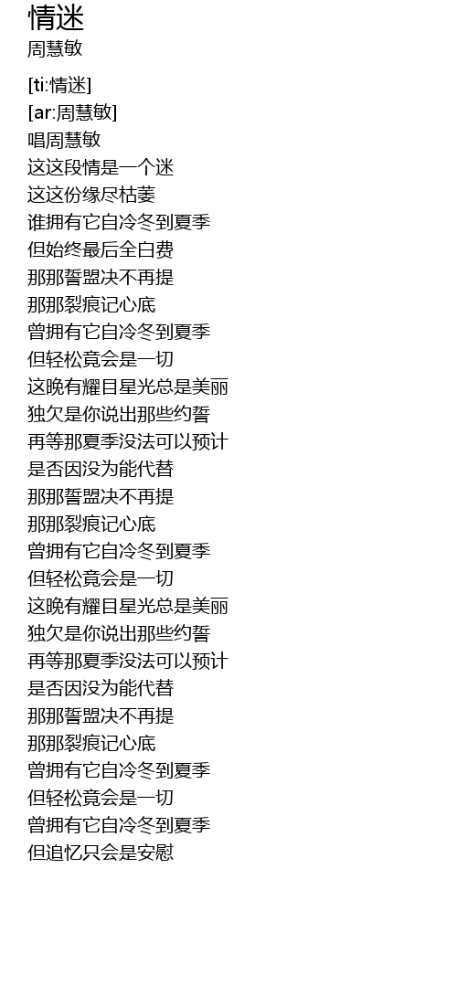 | [00:09.622] | zhè zhè duàn qíng shì yí gè mí |