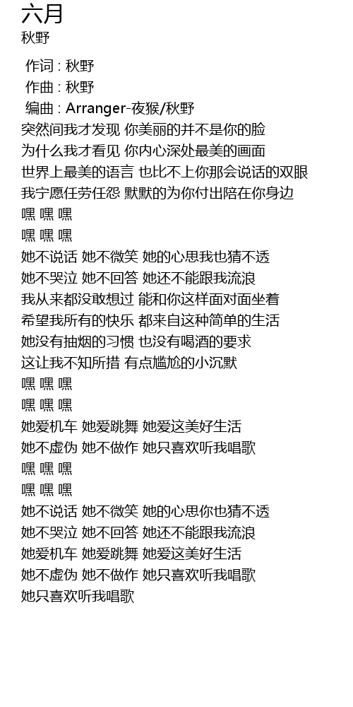 | [00:02.000] | biān qǔ : Arranger yè hóu qiū yě |