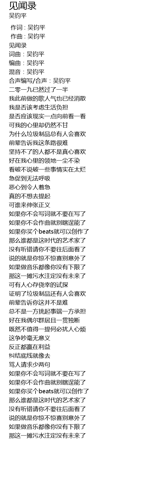| [00:07.435] | 编曲:吴钧平 |