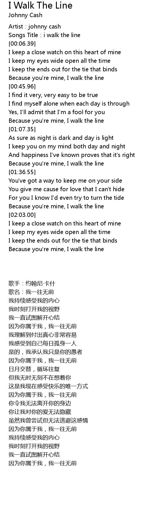 | [01:02.78] | Because you're mine, I walk the line |
