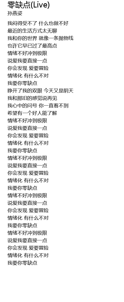 | [03:11.42] | wǒ yào nǐ líng quē diǎn |