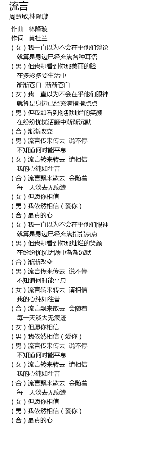 | [03:25.0] | (女)流言转来转去 请相信 |