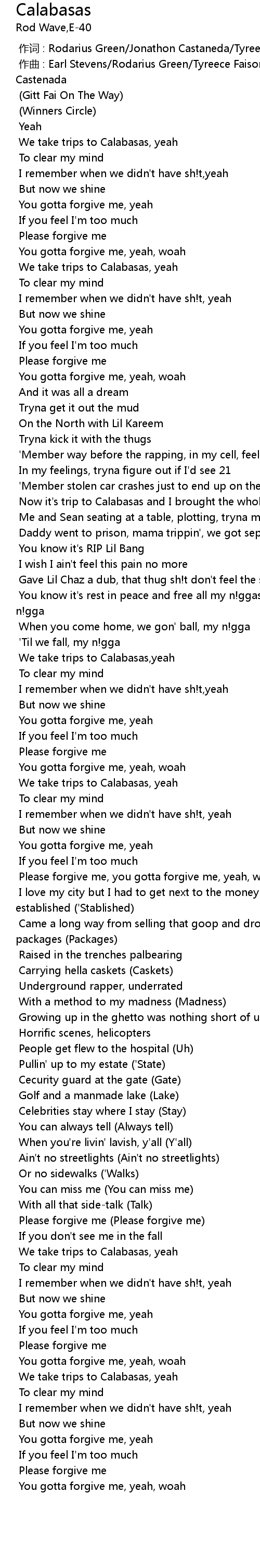 | [01:48.518] | You know it's rest in peace and free all my n!ggas, Reem, call me, n!gga |