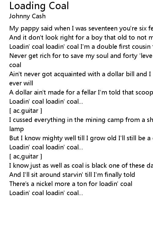 But I know mighty well till I grow old I'll still be a cussin' but loadin' coal |