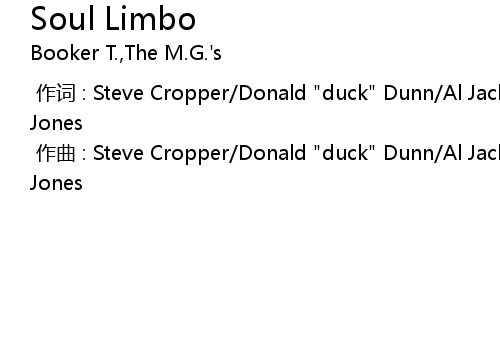 | [00:00.000] | zuò qǔ : Steve Cropper Donald " duck" Dunn Al Jackson, Jr. Booker T. Jones |