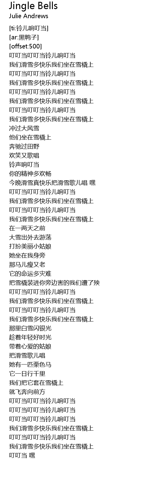 | [02:45.250] | 叮叮当叮叮当铃儿响叮当 |