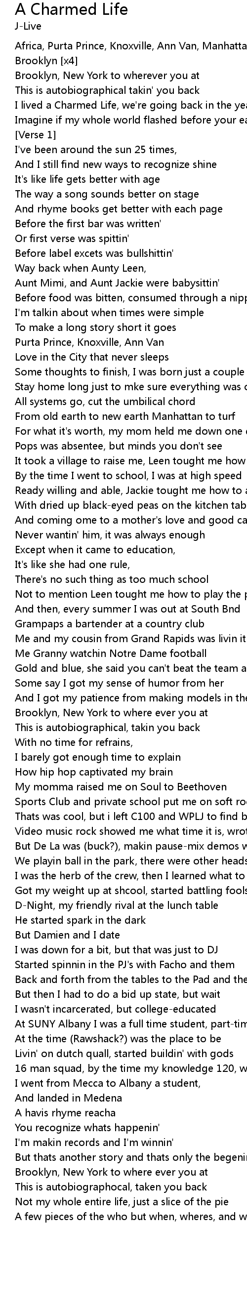 This is autobiographical takin' you back |