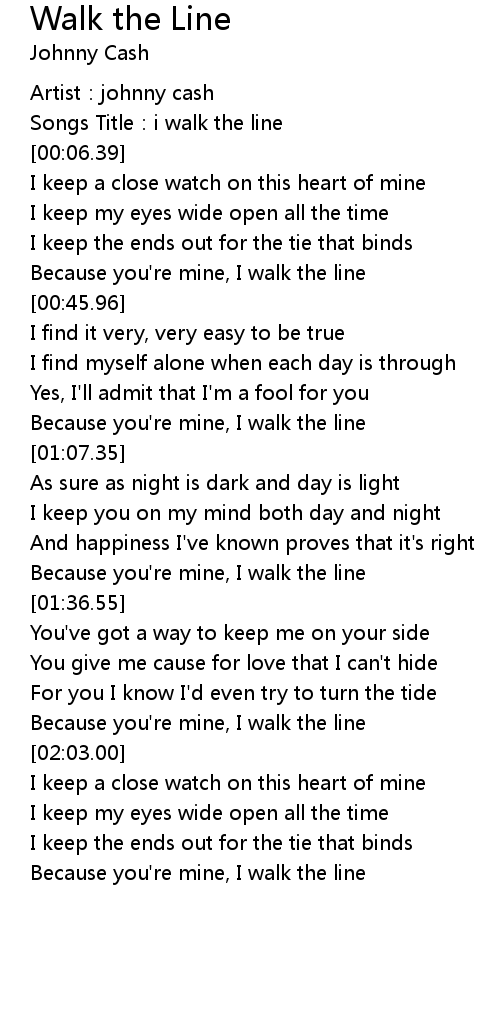 | [00:03.52] | Songs Title: i walk the line |
