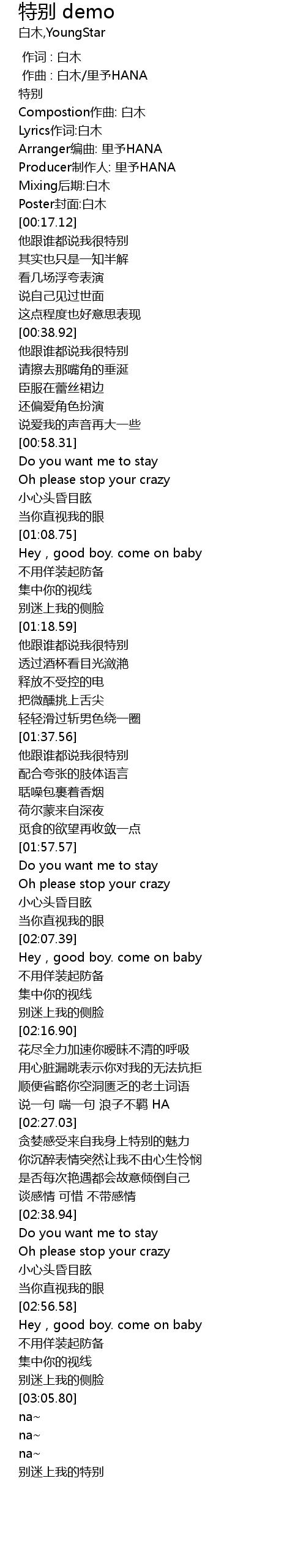 | [03:13.73] | bié mí shàng wǒ de tè bié |