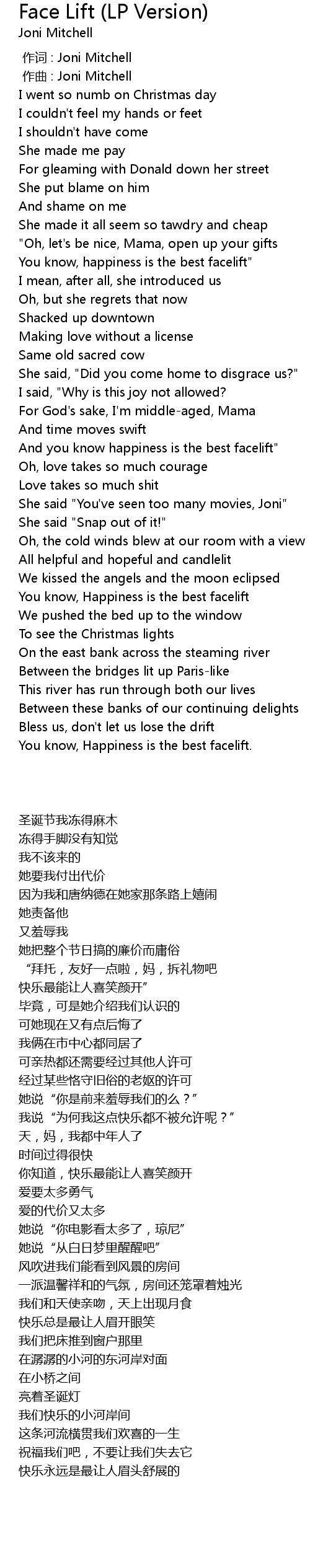 | [01:50.39] | And you know happiness is the best facelift" |