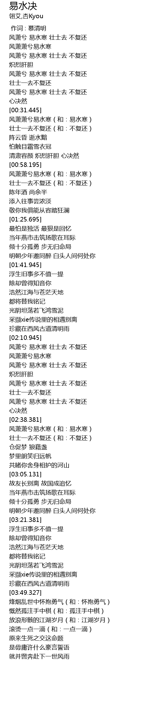 | [00:59.445] | 风萧萧兮易水寒(和:易水寒) |