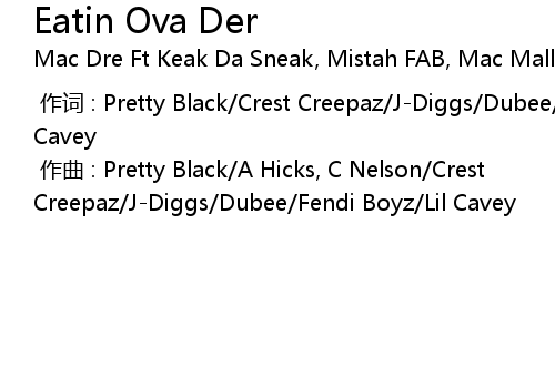 | [00:00.000] | 作词 : Pretty Black/Crest Creepaz/J-Diggs/Dubee/Fendi Boyz/Lil Cavey |