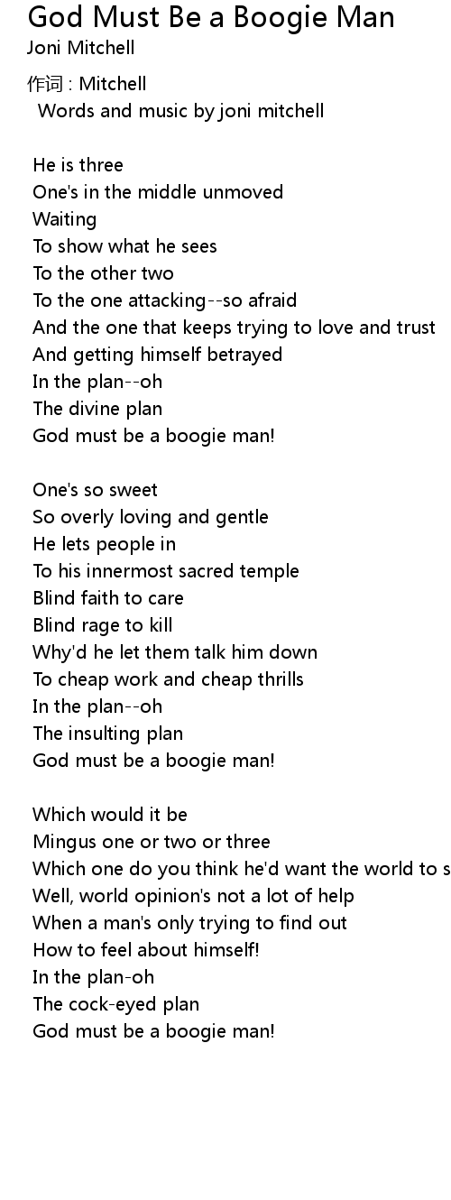 | Song | God Must Be a Boogie Man |