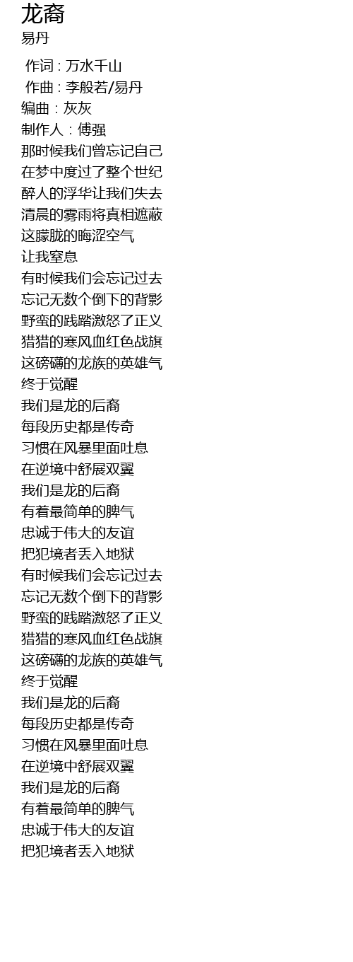 | [03:46.651] | wǒ men shì lóng de hòu yì |