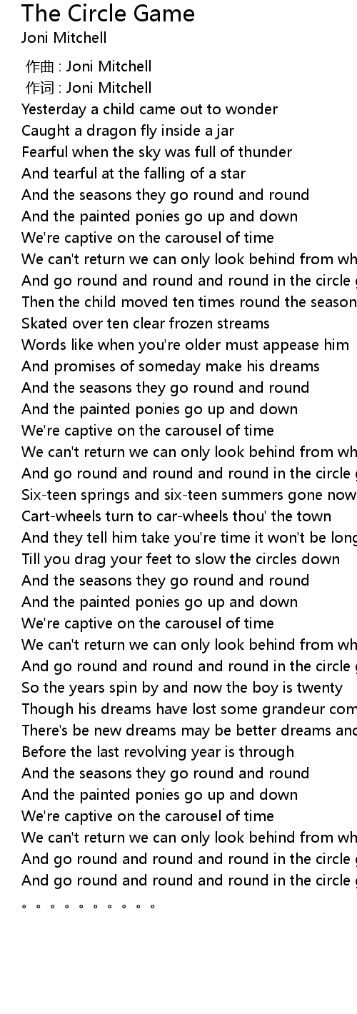 | [03:16.99] | And go round and round and round in the circle game |