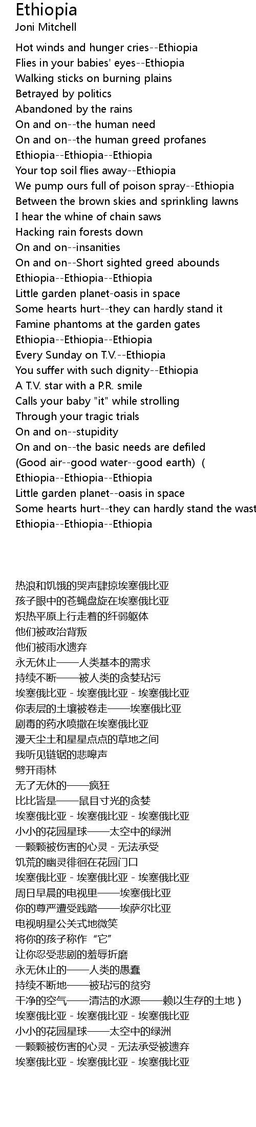 | [00:18.17] | Hot winds and hunger cries--Ethiopia |