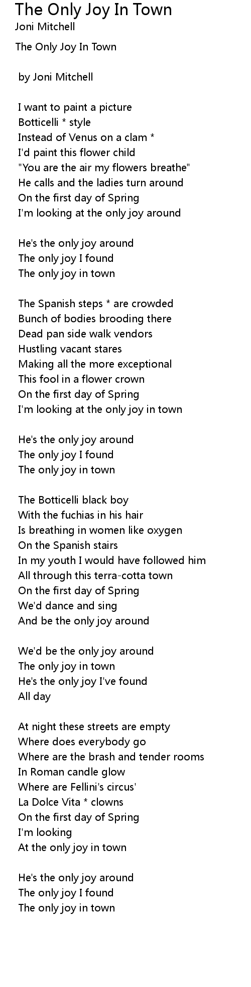 The Only Joy In Town |