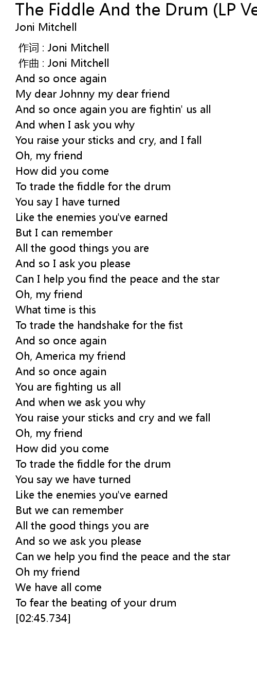 | [00:00.476] | zuò qǔ : Joni Mitchell |