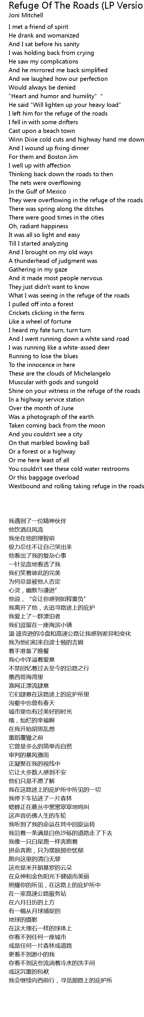 | [03:08.00] | What I was seeing in the refuge of the roads |
