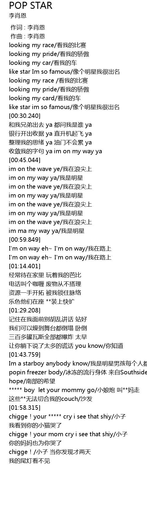 | [01:46.519] | Im a starboy anybody know wo shi ming xing nan hai mei ge ren dou zhi dao |