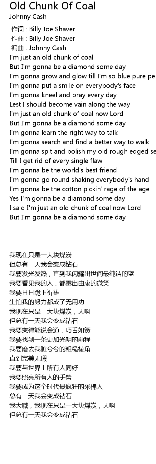 | [01:34.645] | I said I' m just an old chunk of coal now Lord |
