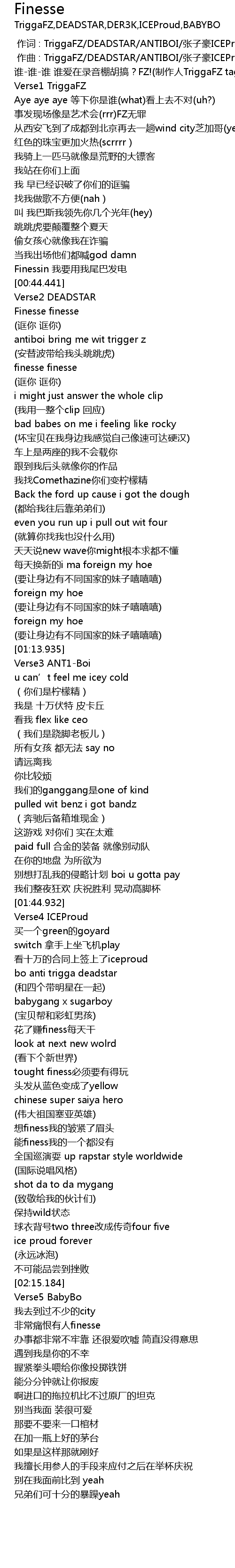 | [02:16.932] | fēi cháng tòng hèn yǒu rén finesse |