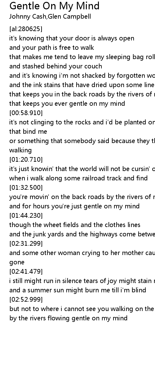 and for hours you're just gentle on my mind |