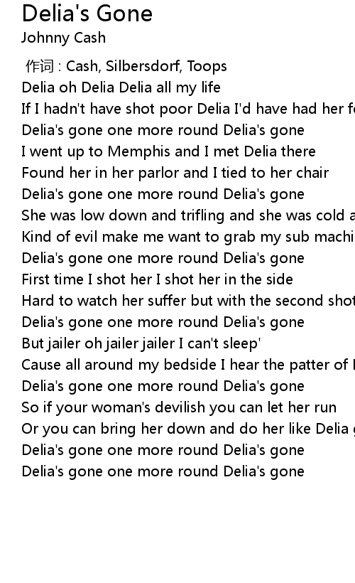 | [02:04.47] | Delia' s gone one more round Delia' s gone |