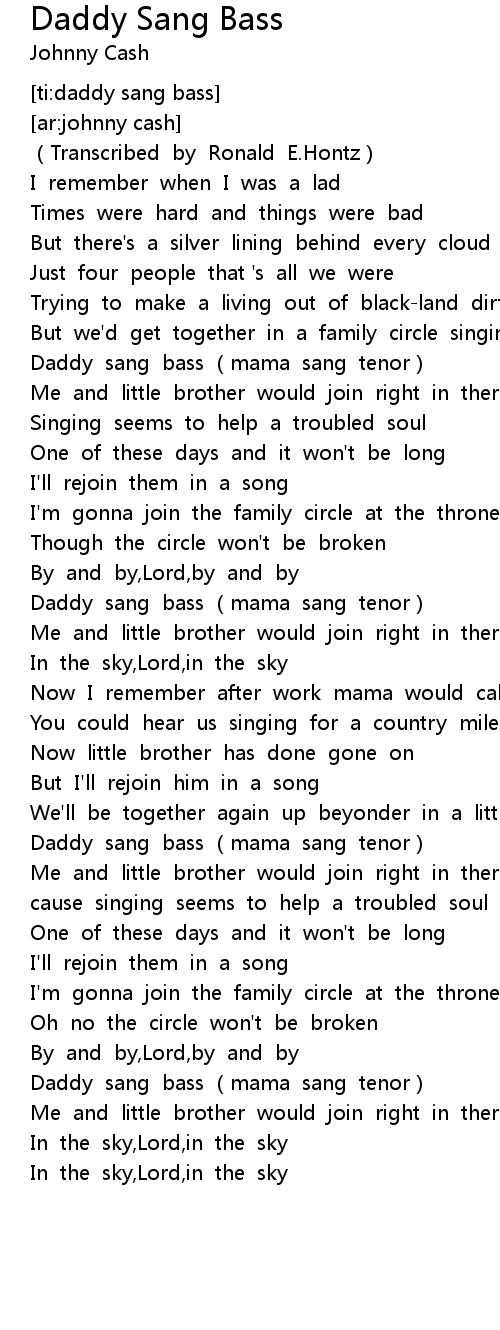 | [01:29.351] | Daddy sang bass (mama sang tenor) |