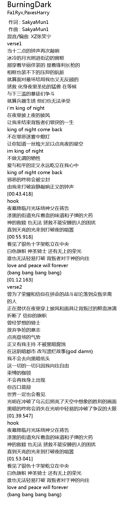 | [00:10.669] | 混音/编曲: XZ张笑宁 |