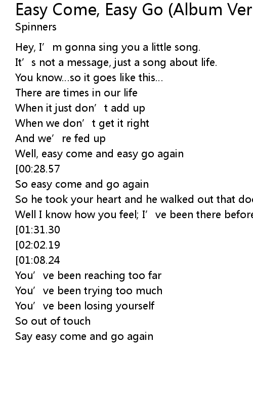 | [02:35.92][01:08.24] | I said easy come and go again |