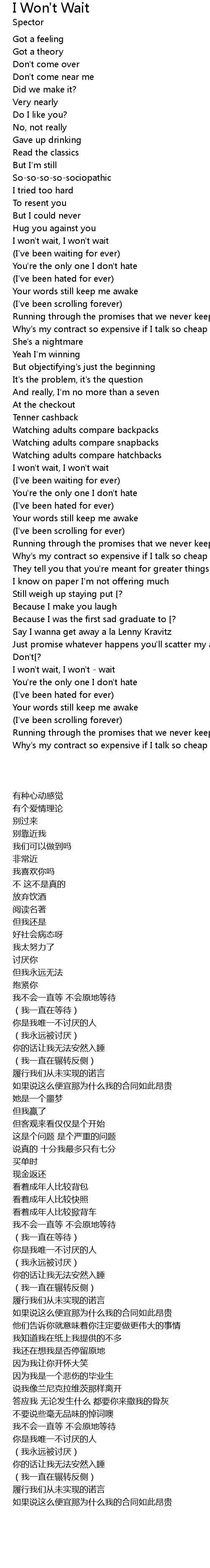 I won't wait, I won't wait |