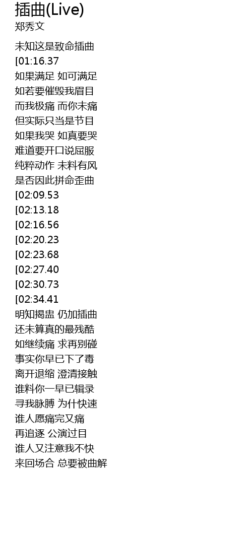 | [01:25.89] | 明知揭盅 仍加插曲 |