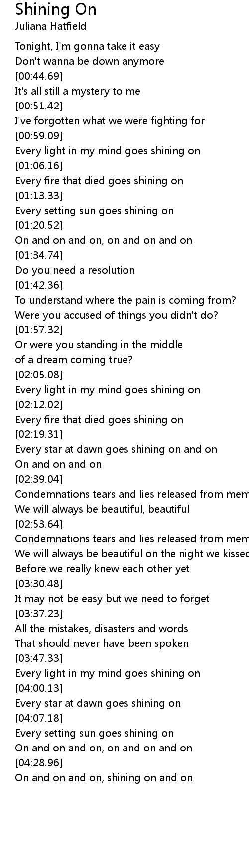 On and on and on, shining on and on |