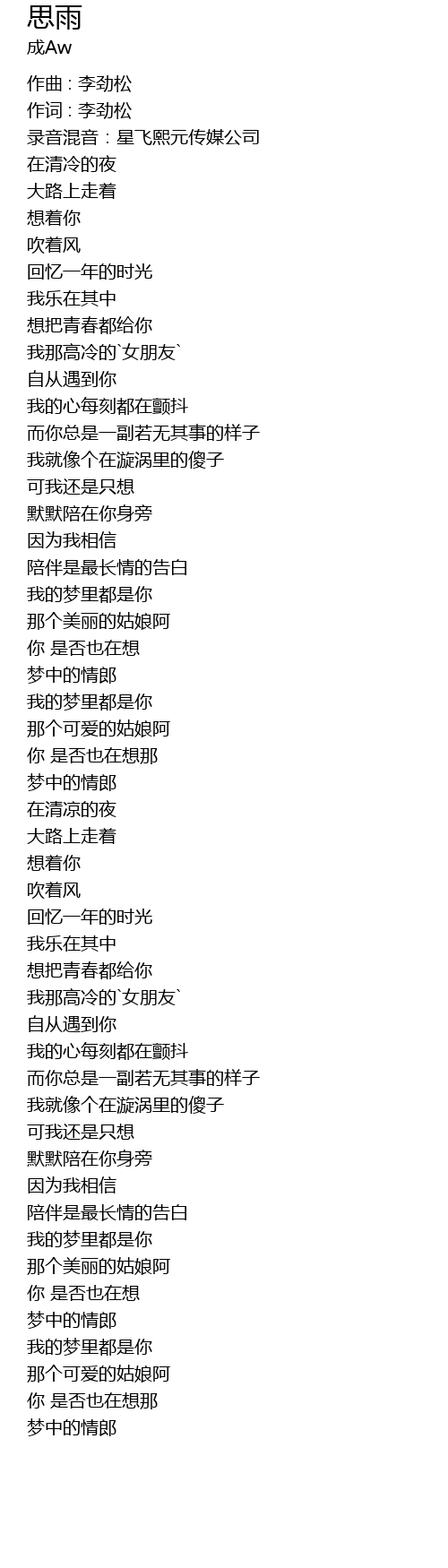 | [00:08.302] | 录音混音:星飞熙元传媒公司 |
