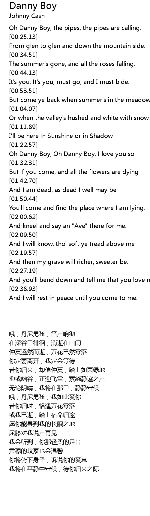 Oh Danny Boy, Oh Danny Boy, I love you so. |