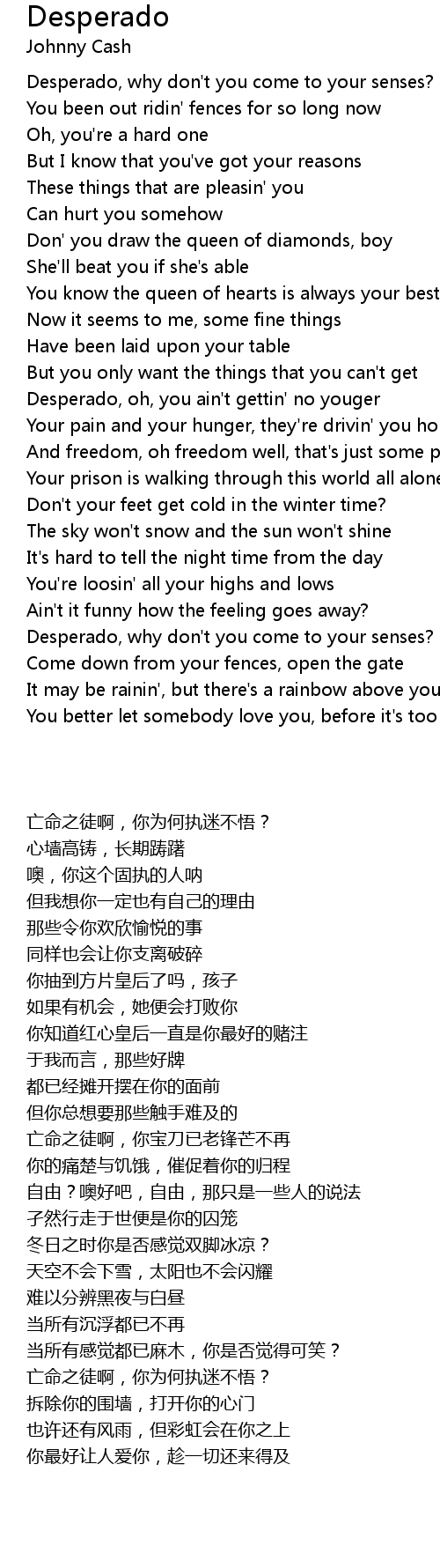 Desperado, why don't you come to your senses? |