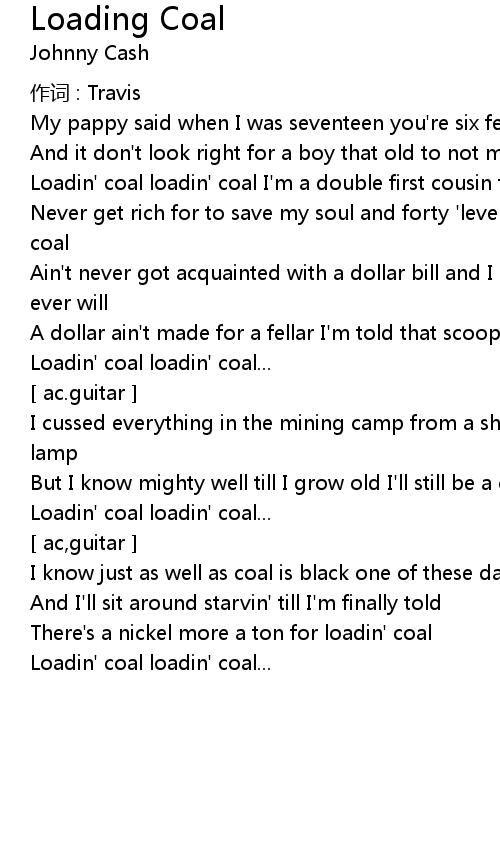 | But I know mighty well till I grow old I'll still be a cussin' but loadin' coal | |